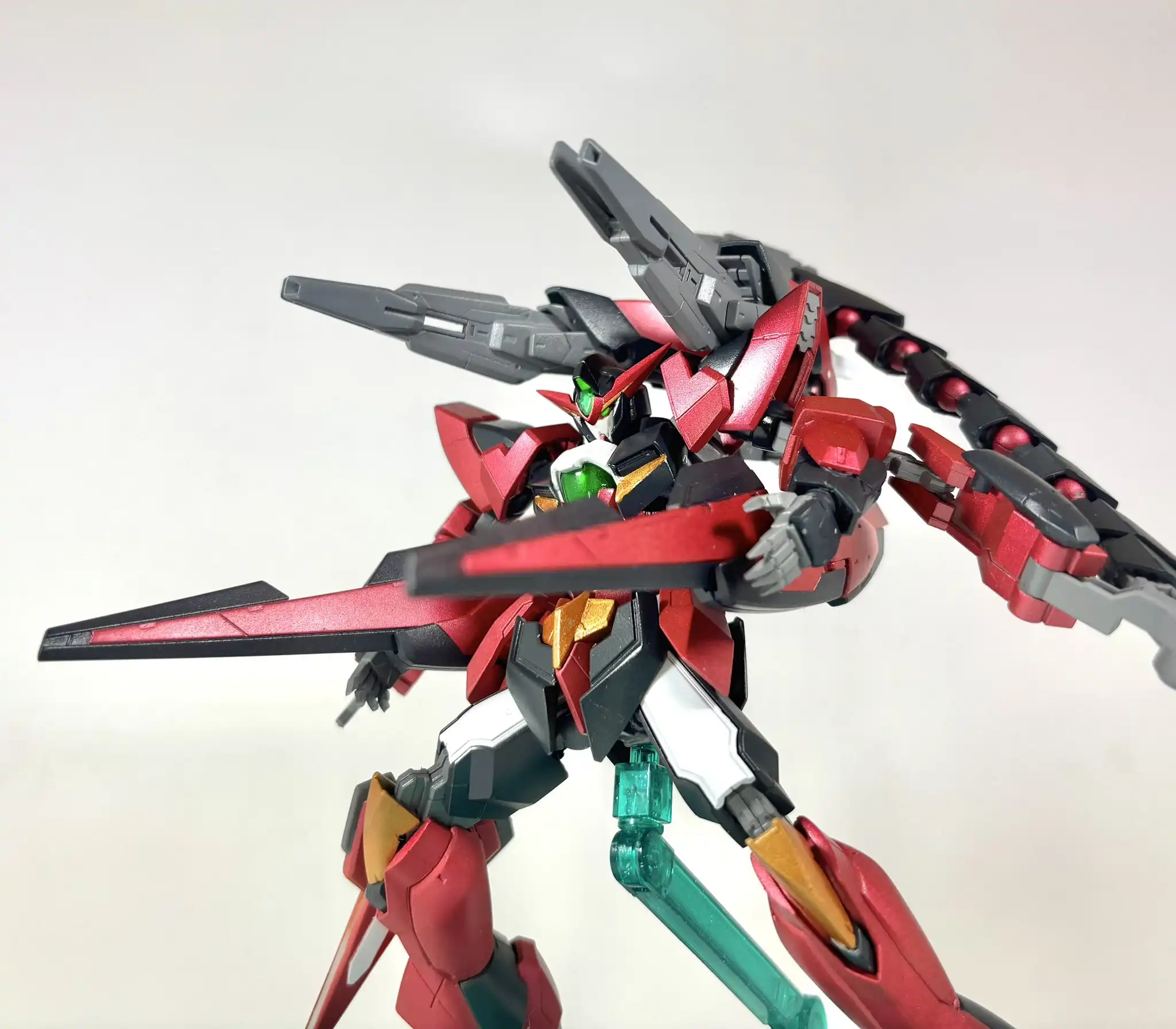 Modeler Word : “I mixed parts from the 1.5 Gundam and the Reversible Gundam. By chance, the armament configuration ended up resembling Epyon, so I tried coloring it in Epyon colors.”