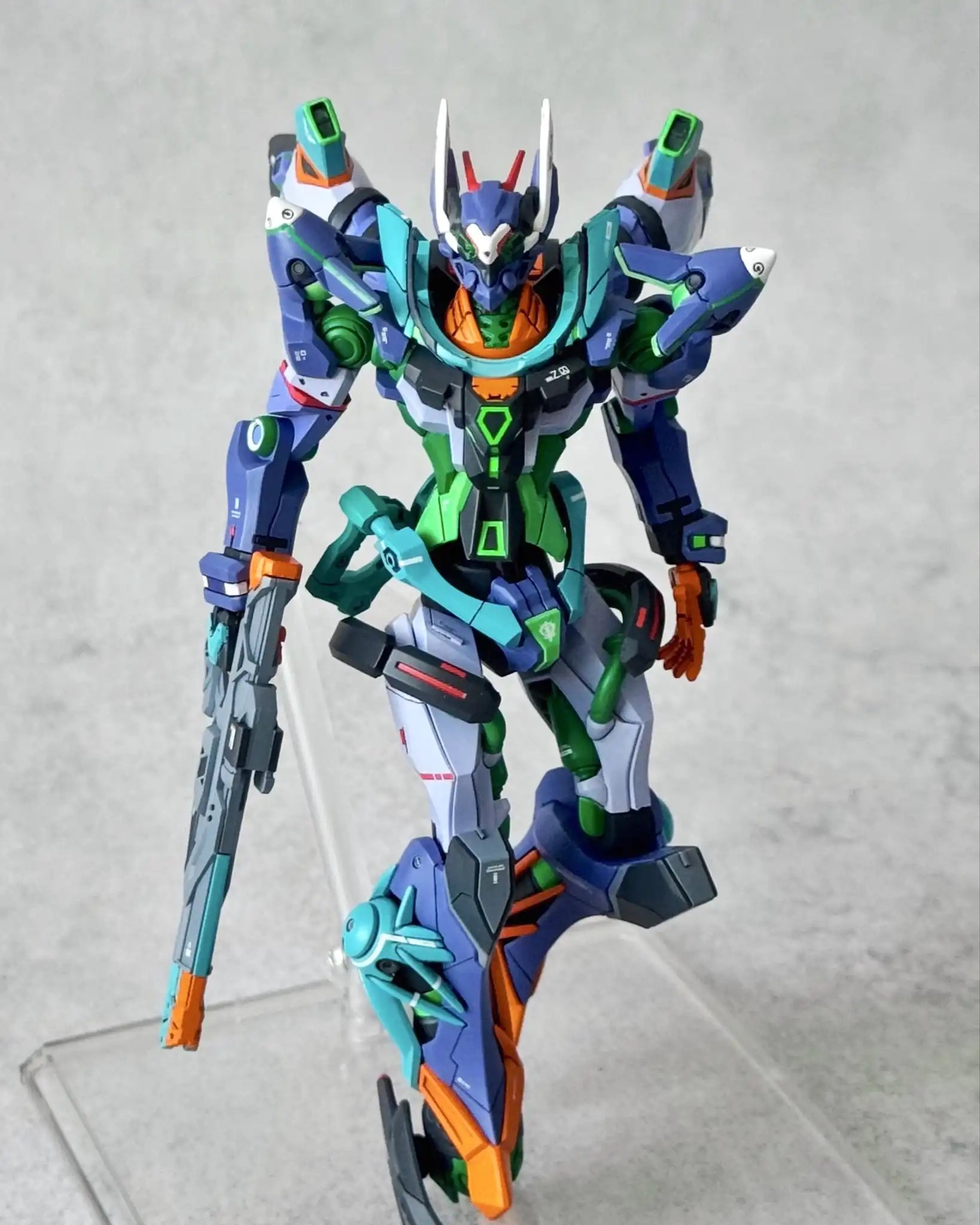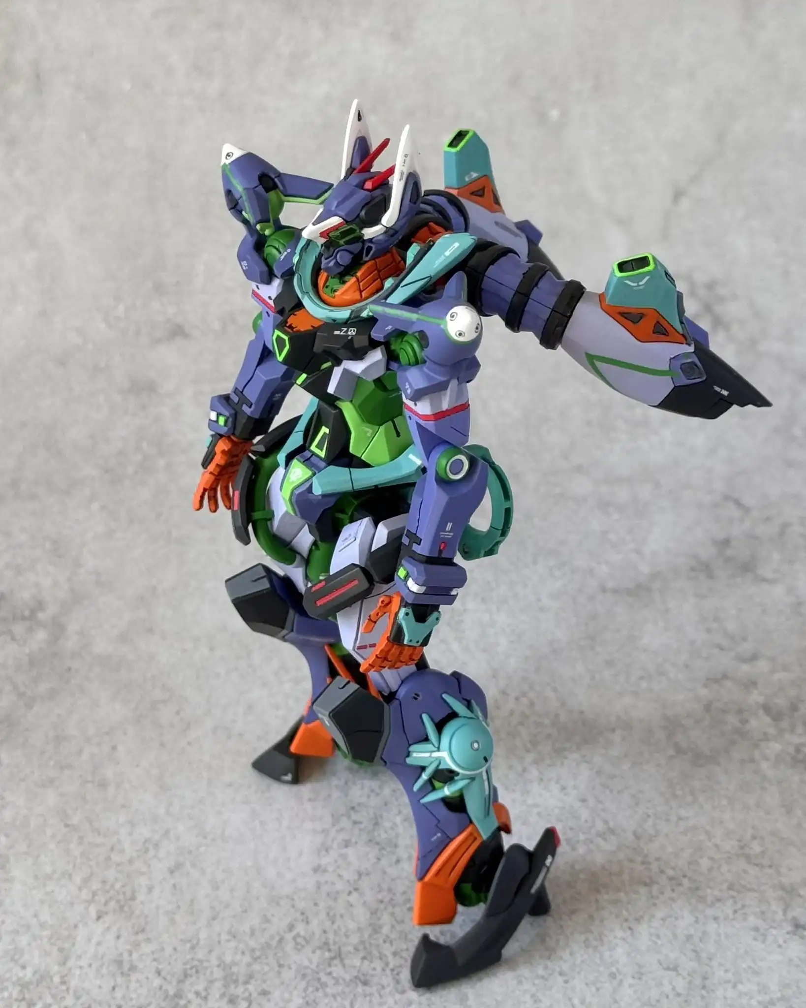 For the coloring, I mixed a purple with a stronger blue tint, inspired by the final Eva Unit.