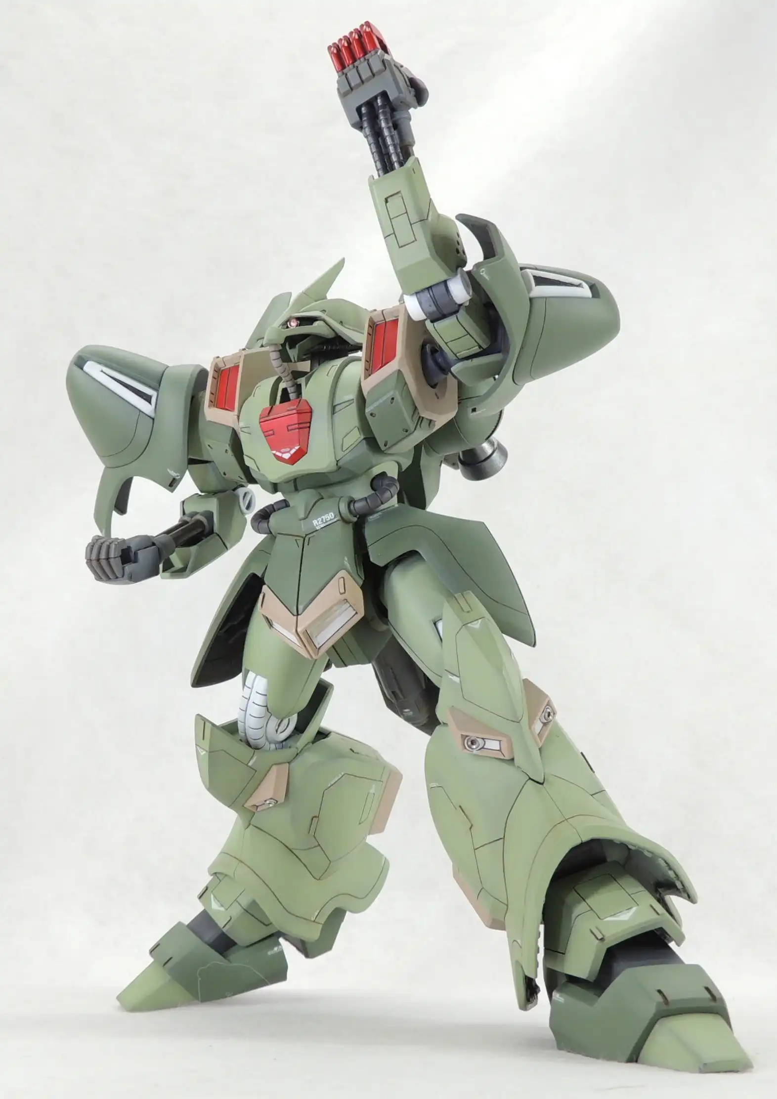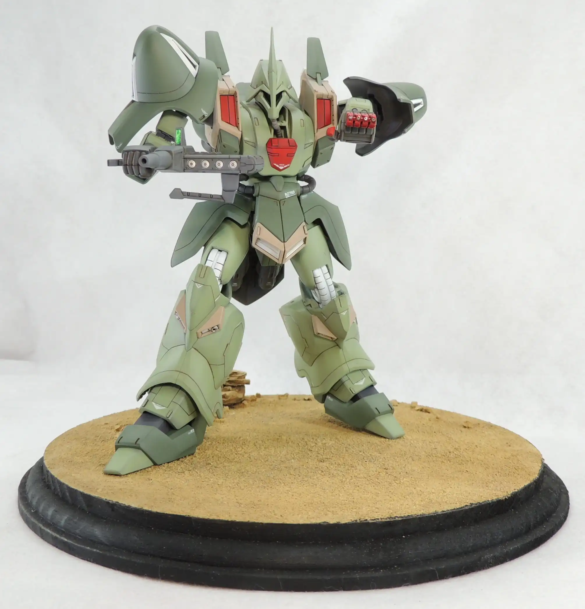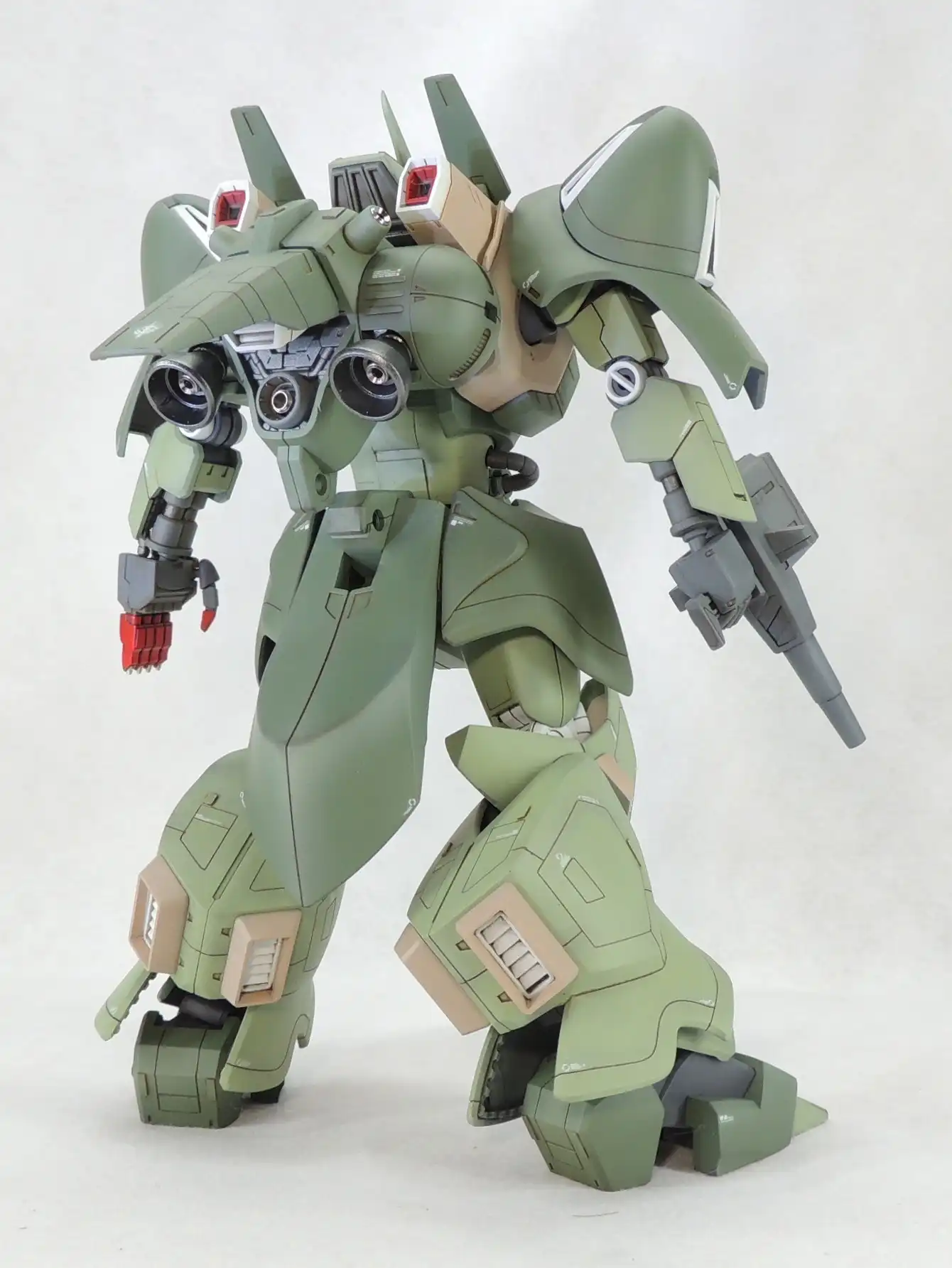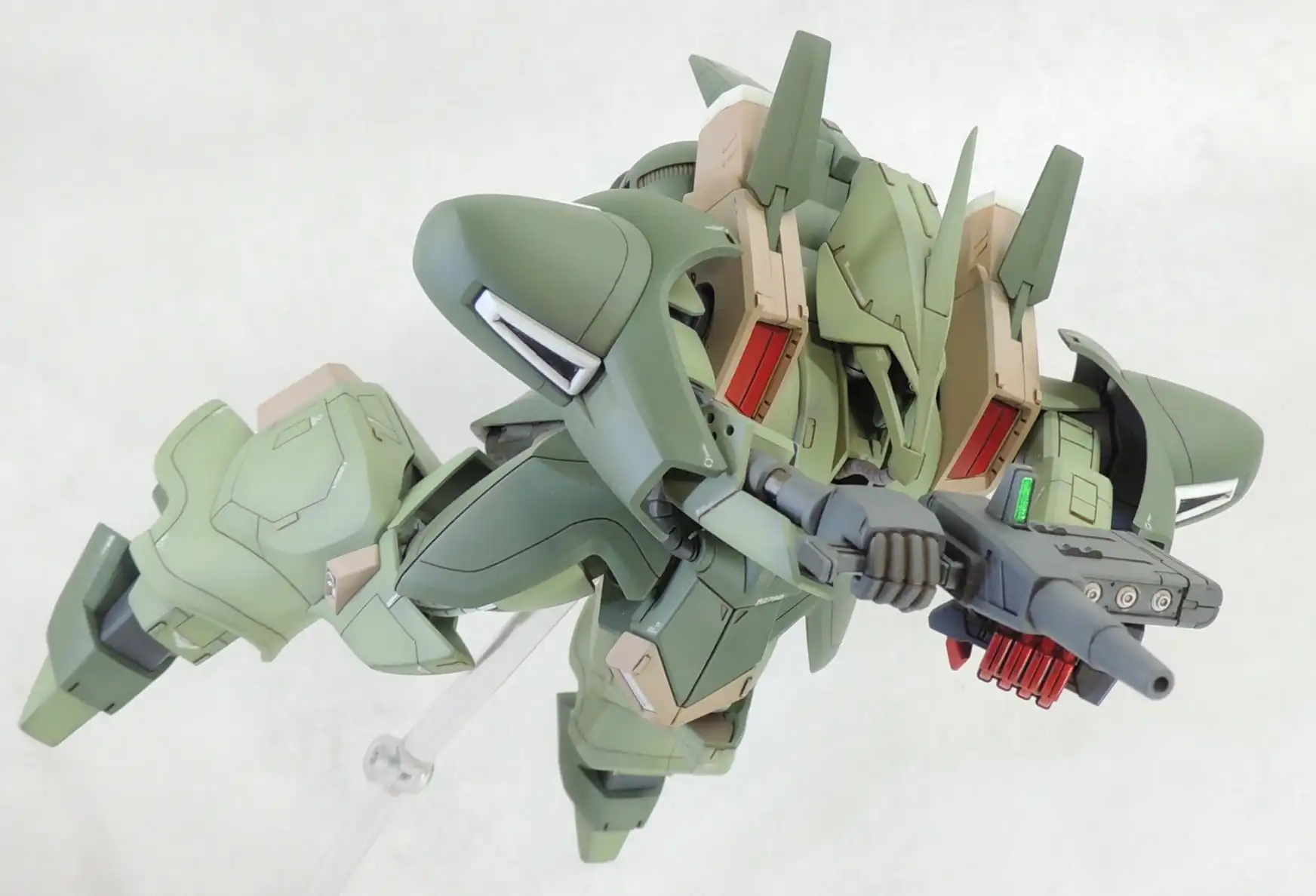 Modeler Word : “Monoeye replaced with SP plate and H-eyes. Abdomen extended by 3mm using layered plastic sheets. Propellant tank added to the rear skirt. Filled in the lightening holes at various points, and installed a gun muzzle (ฯ†1.0mm) at the tip of the finger launcher. Controlled the accent color = highlight color for painting.”