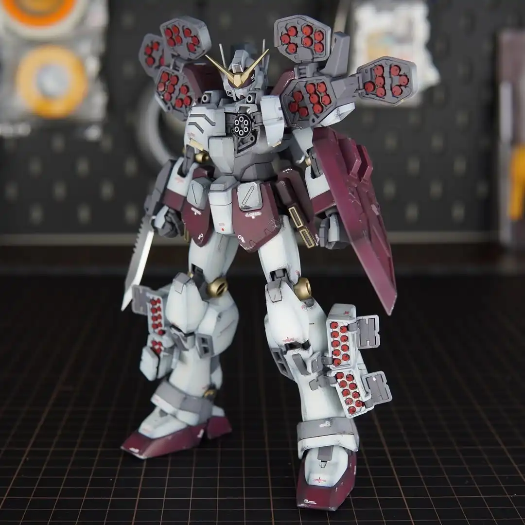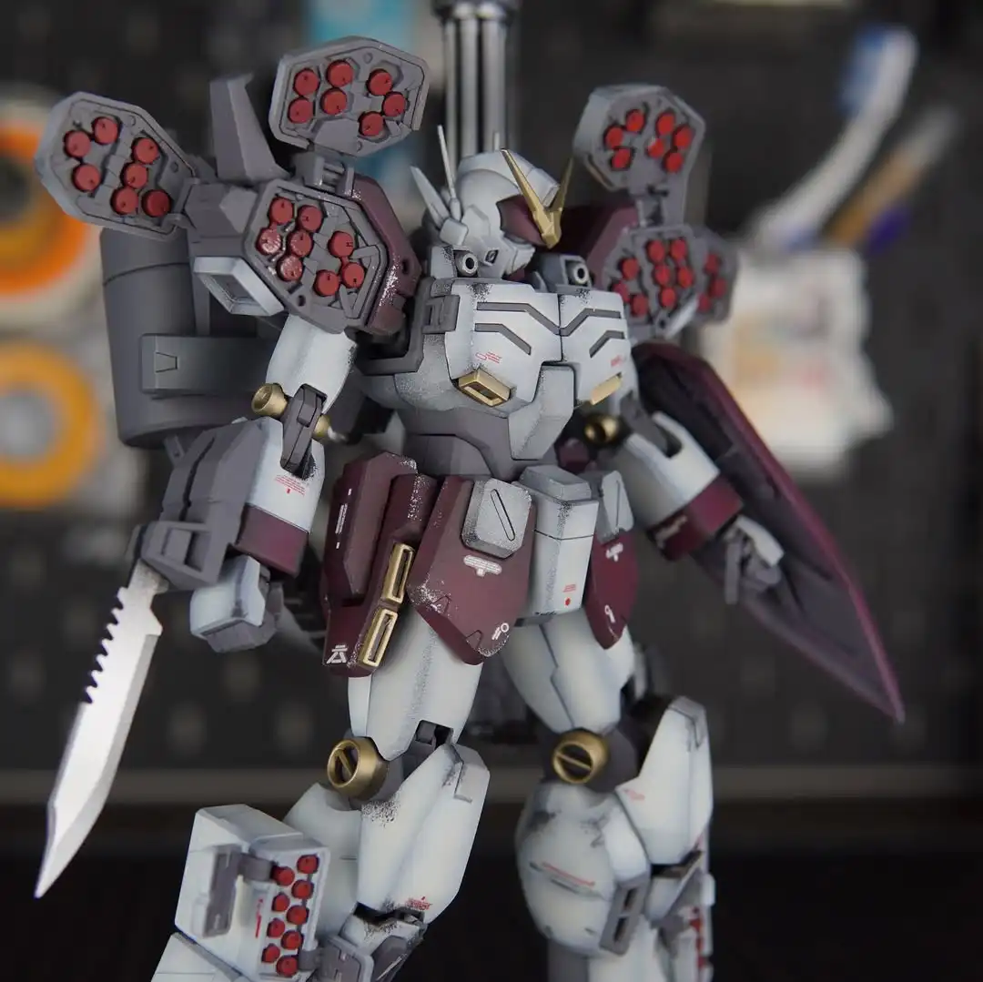 Modeler Word : “This was a fun project to start the year off because it was for one of my best friends. He gave me two conditions Maroon & Gold throughout the build. So I can’t take credit for this color scheme & I gotta admit it grew on me. At first I was like a Maroon mecha suit? Now I’m like ok I want a Maroon mecha suit in my display case. This was also the first time I’ve shipped a build to someone so hopefully it makes it all in one piece.