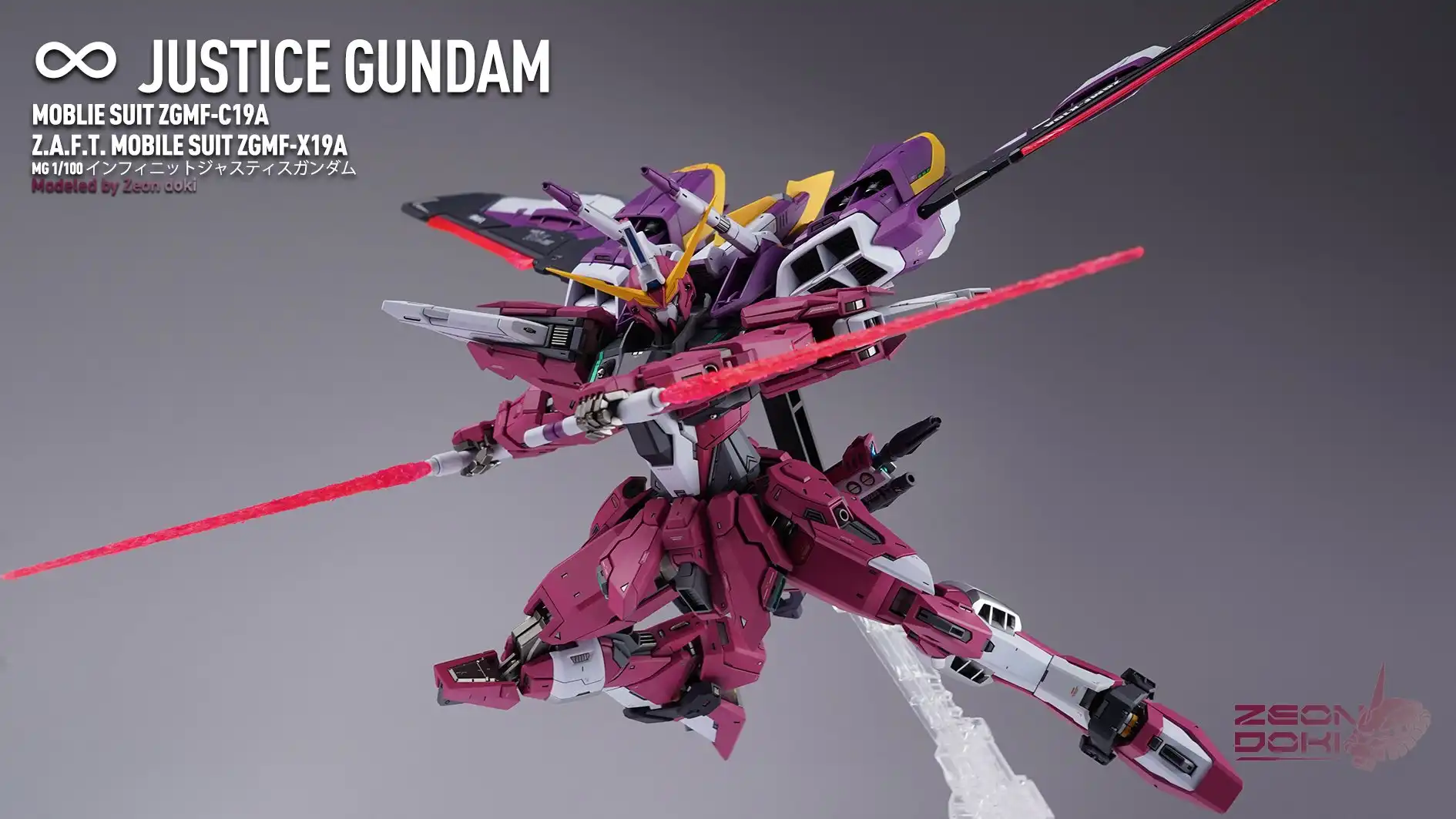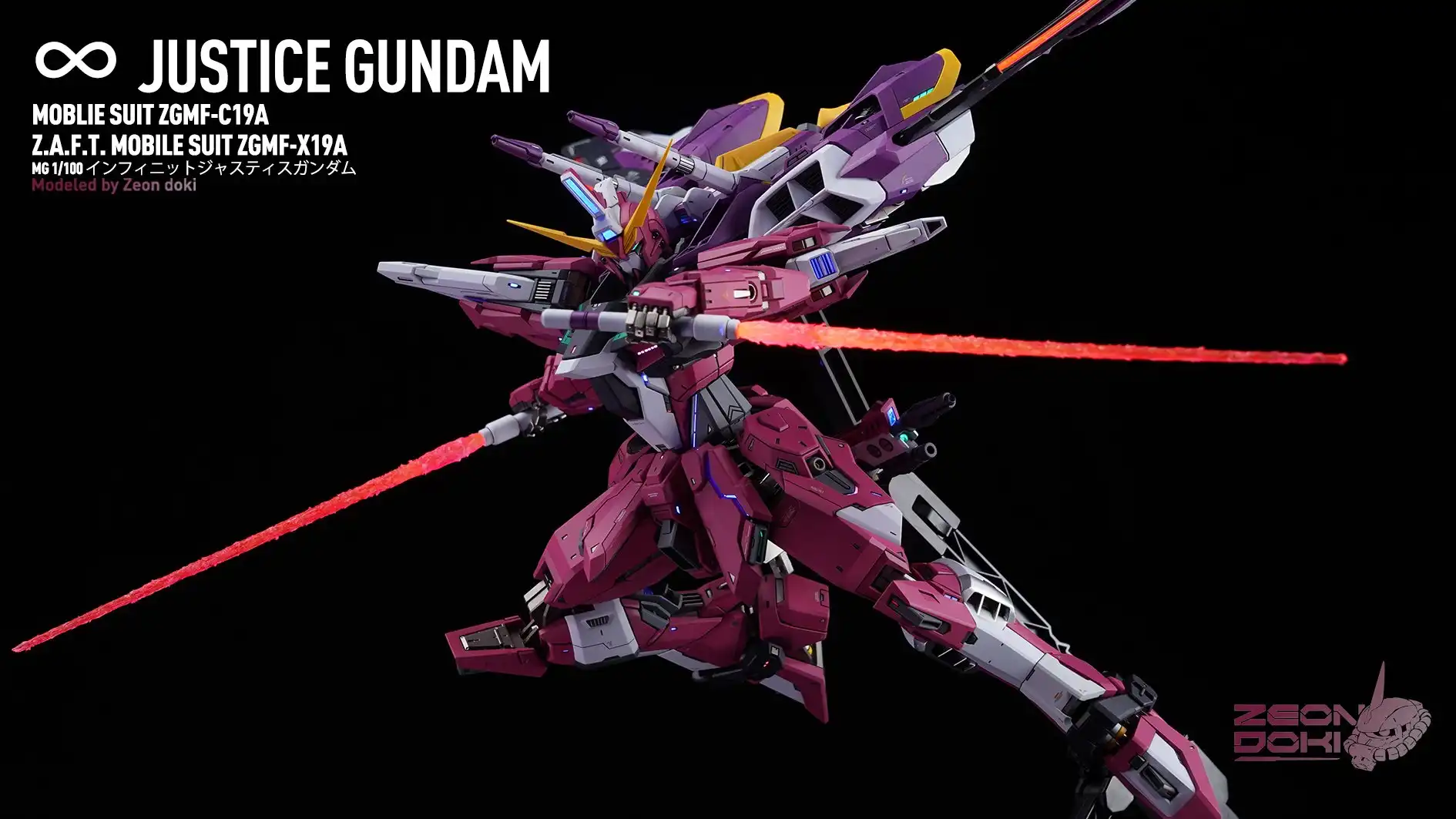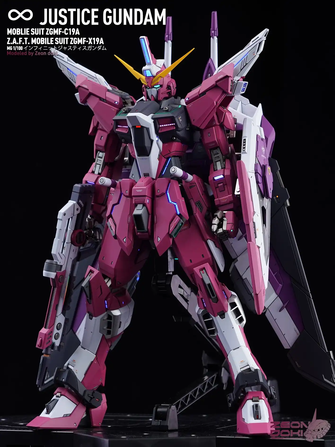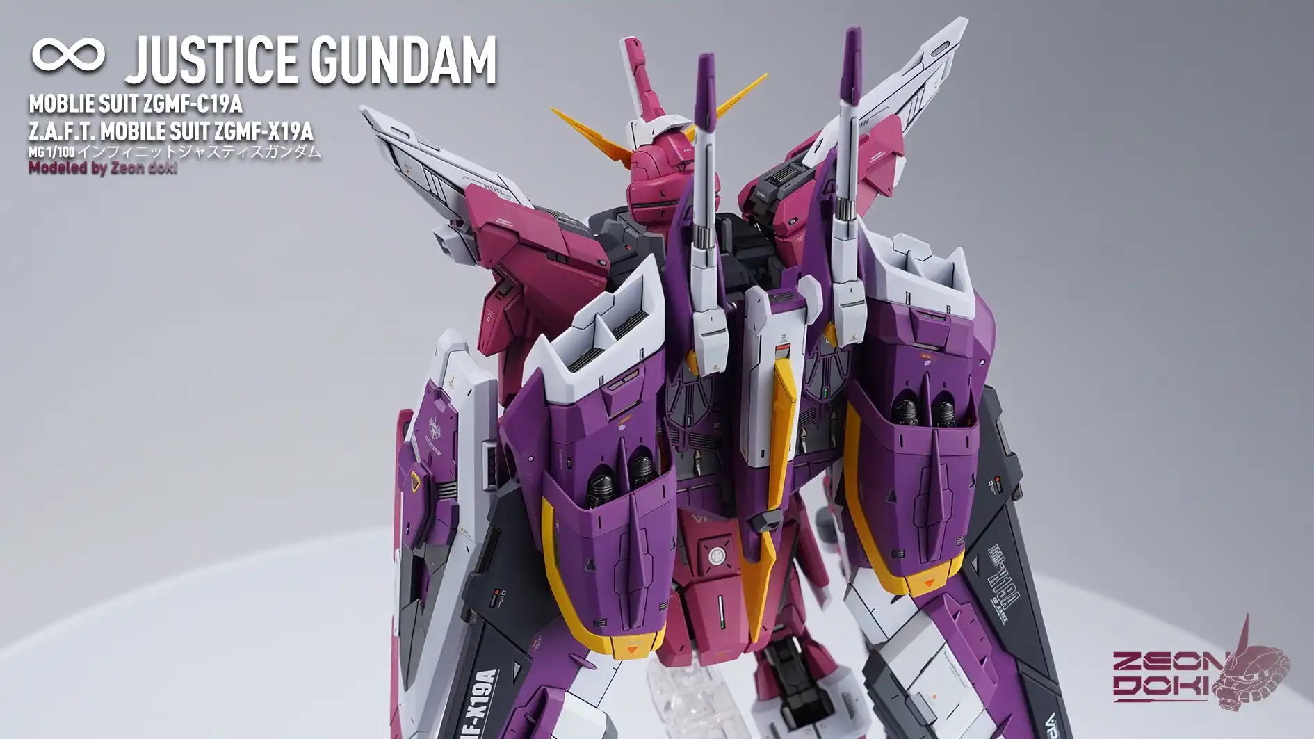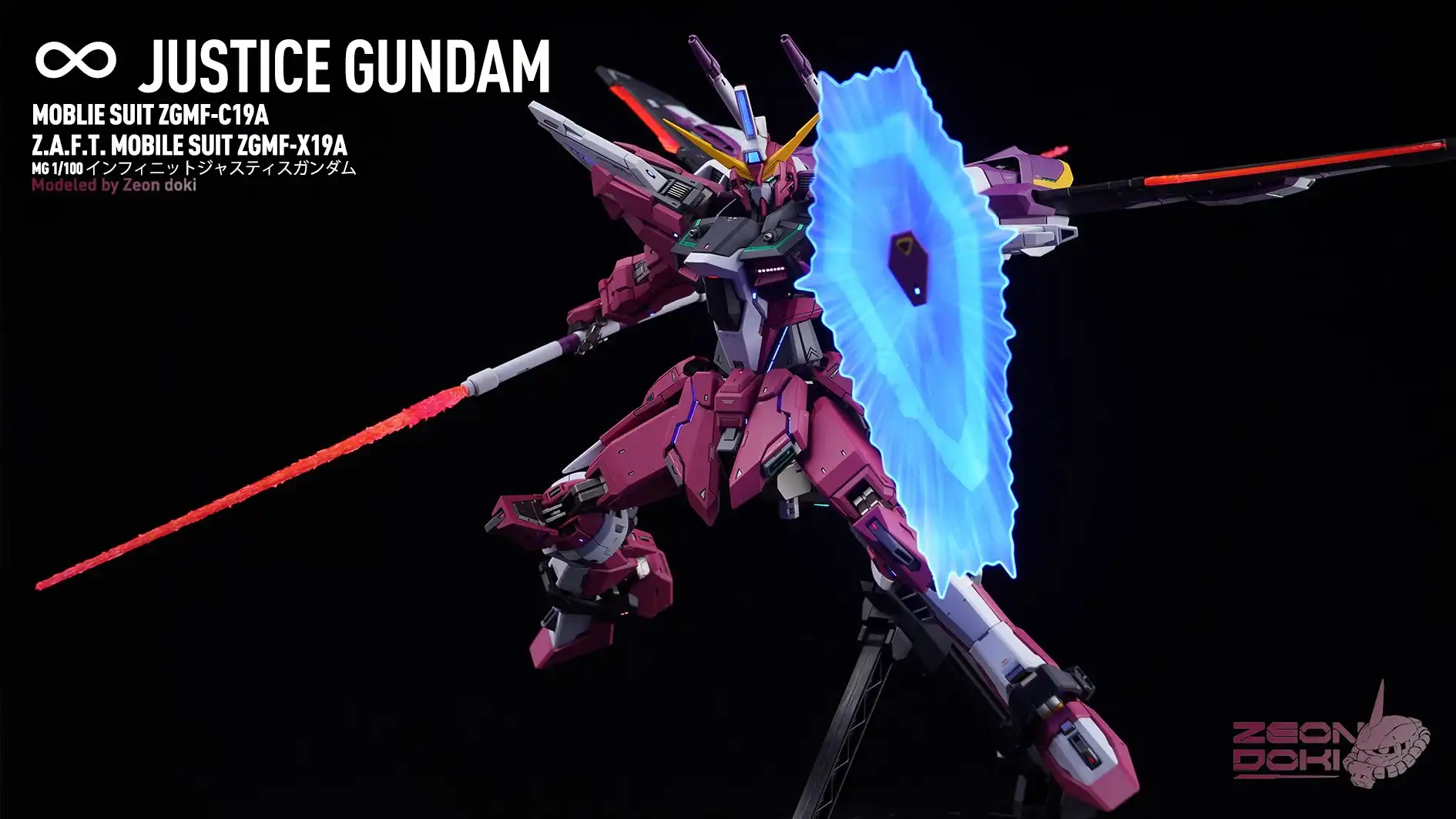 My friend Gion Doki made an MG Infinite Justice Gundam for me! It won the Gold Award in the SEED category at the 27th My Zaragu Tournament. Here are some unpublished photos and a link to a YouTube video that details the production process!