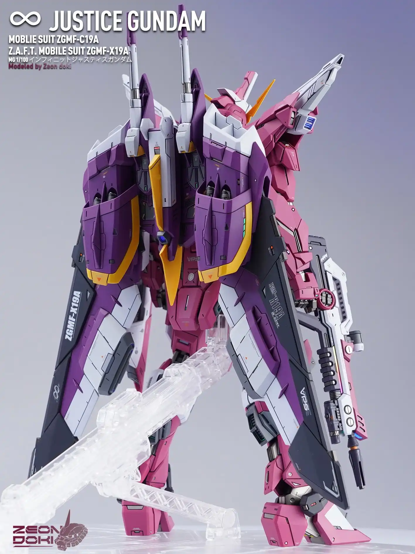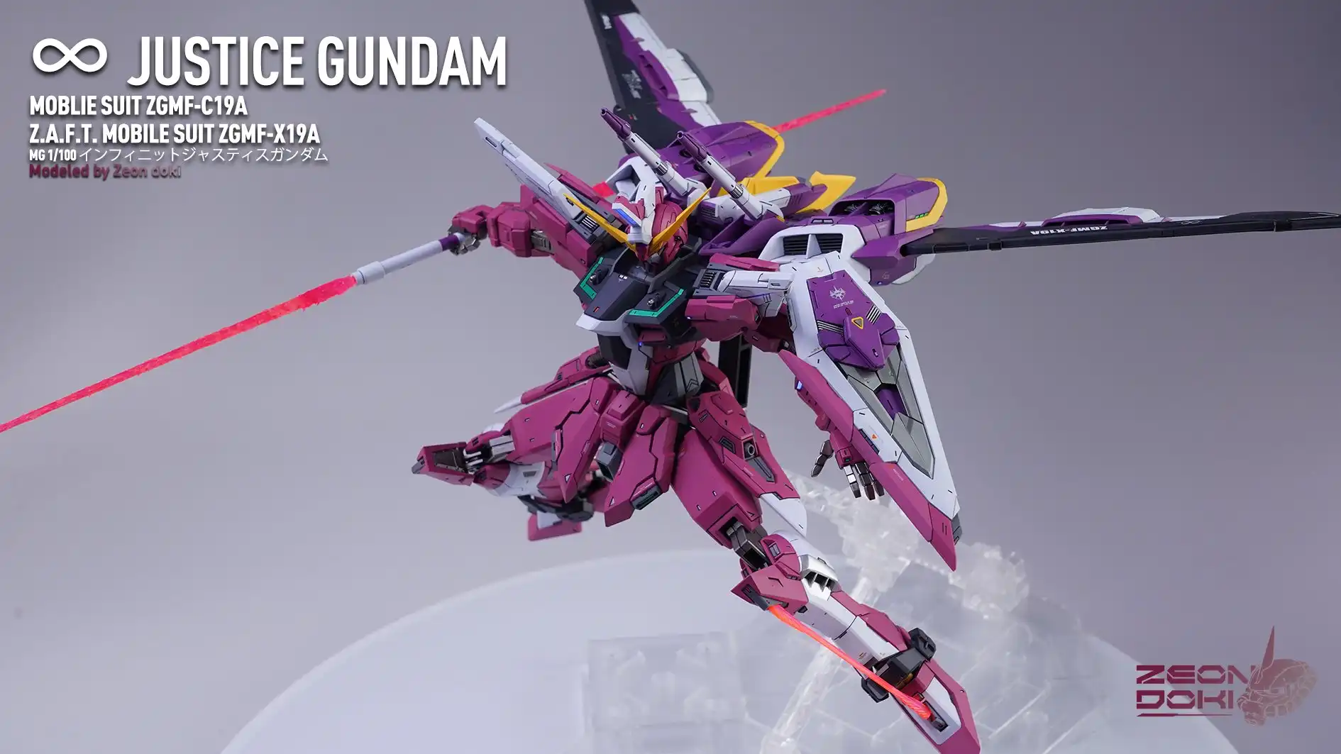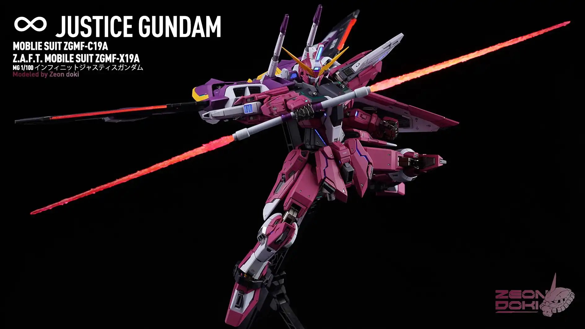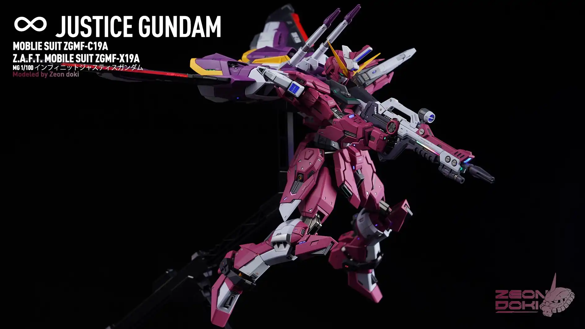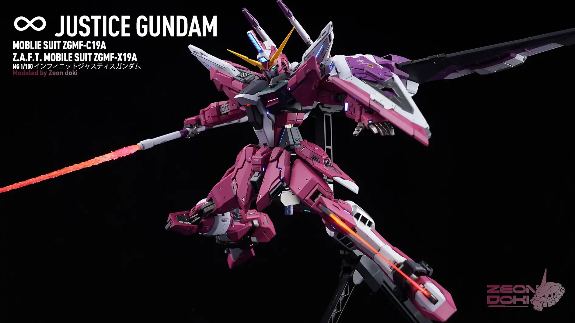 My friend Gion Doki made an MG Infinite Justice Gundam for me! It won the Gold Award in the SEED category at the 27th My Zaragu Tournament. Here are some unpublished photos and a link to a YouTube video that details the production process!
